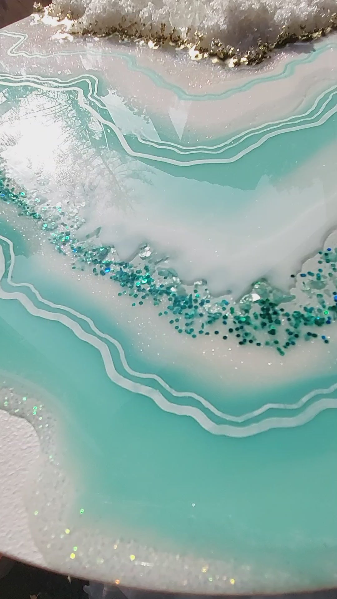 Handmade in an artist's studio, each piece may have minor imperfections such as bubbles, ripples, or small particles that found their way onto the painting and cured within the resin over the 24-48 hour drying period. Feel free to contact me if you wish to see more pictures or request a video.