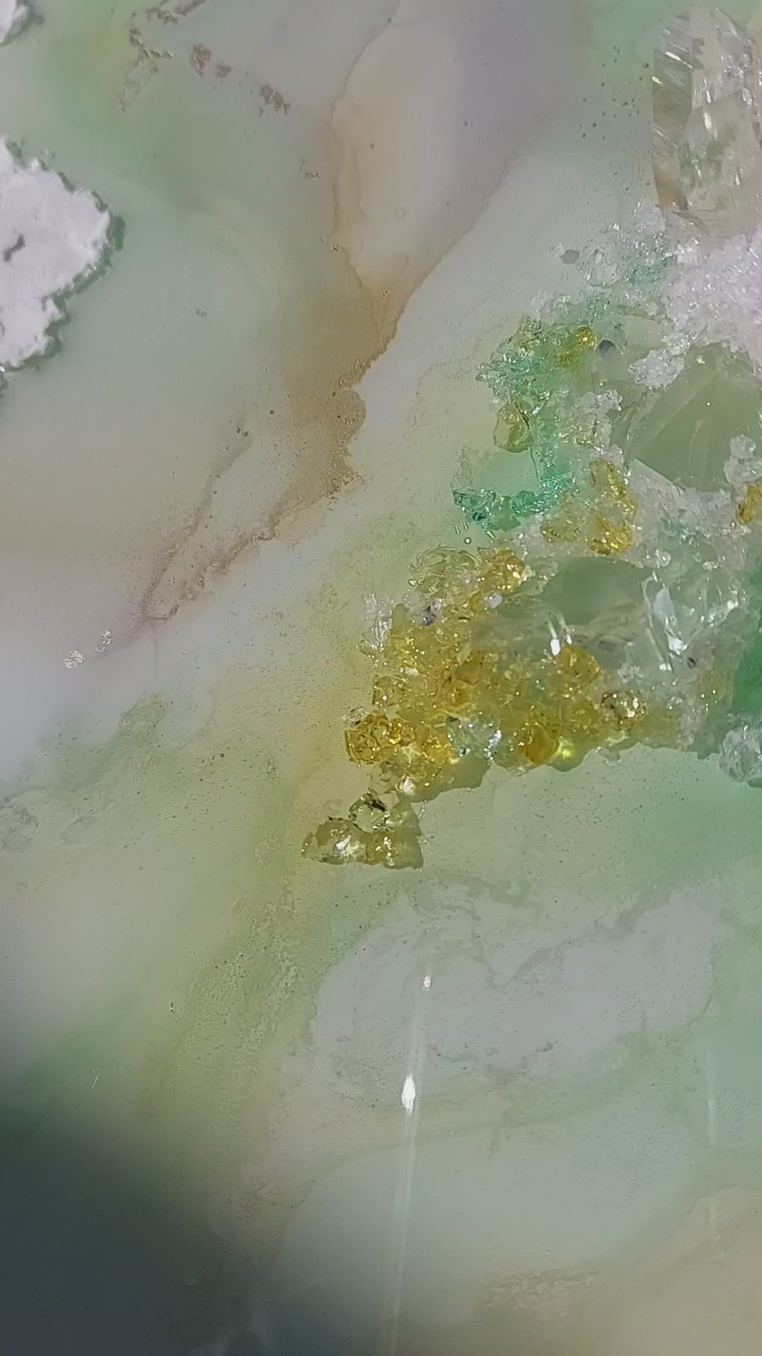 Dive into the enchanting world of Awakening Harmony, a stunning geode art painting that beautifully marries nature’s elegance with artistic expression. Measuring 30 x 50 x 5 cm (12 x 20 x 2 inch), this captivating piece immerses you in soft greens and gentle yellows, evoking the serenity of a sun-drenched landscape. Each hue flows seamlessly into the next, inviting you to explore the calming essence of nature’s palette.