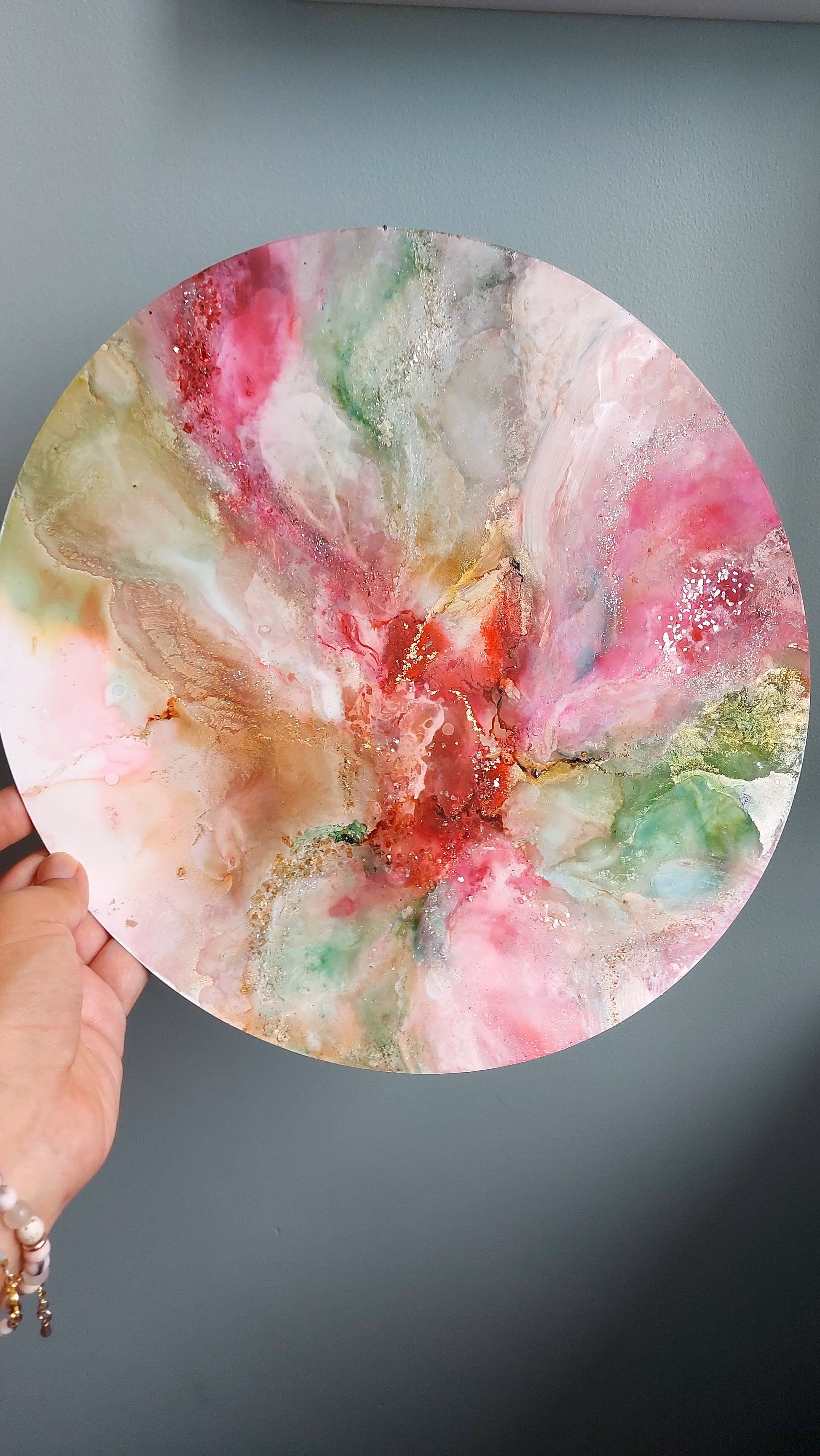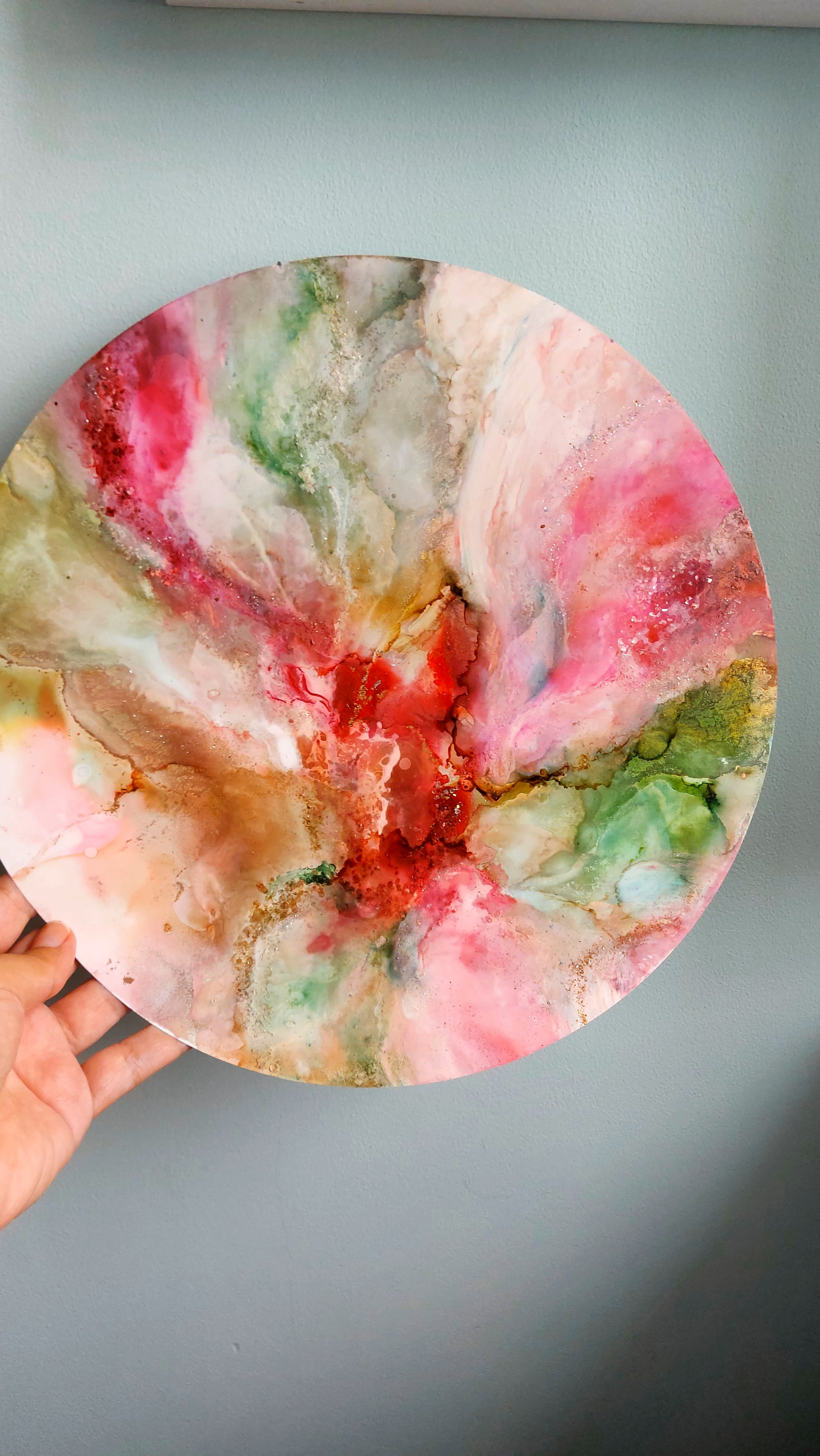 A Mixed Media Painting on Alcohol Ink Paper (30cm Diameter) - 12 inch