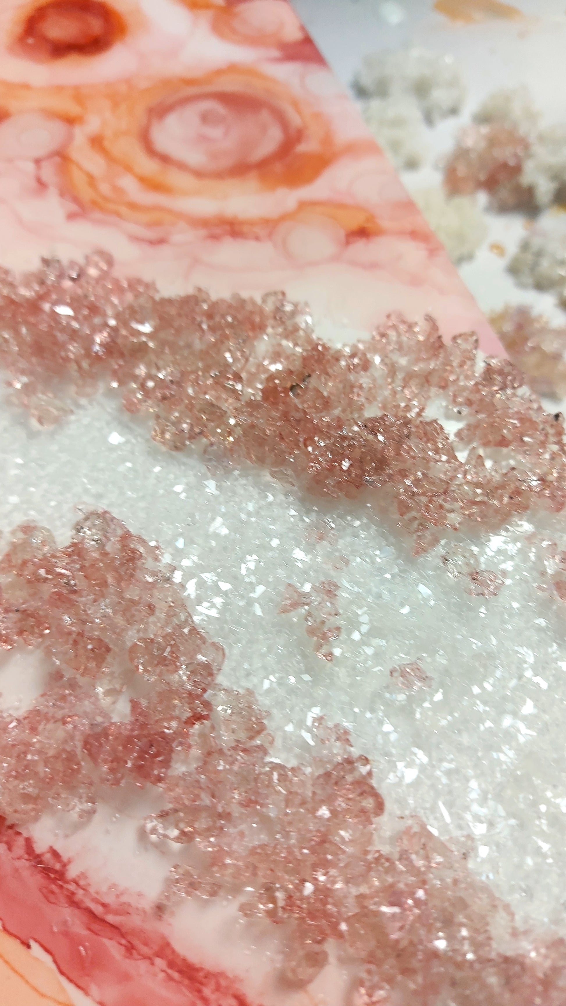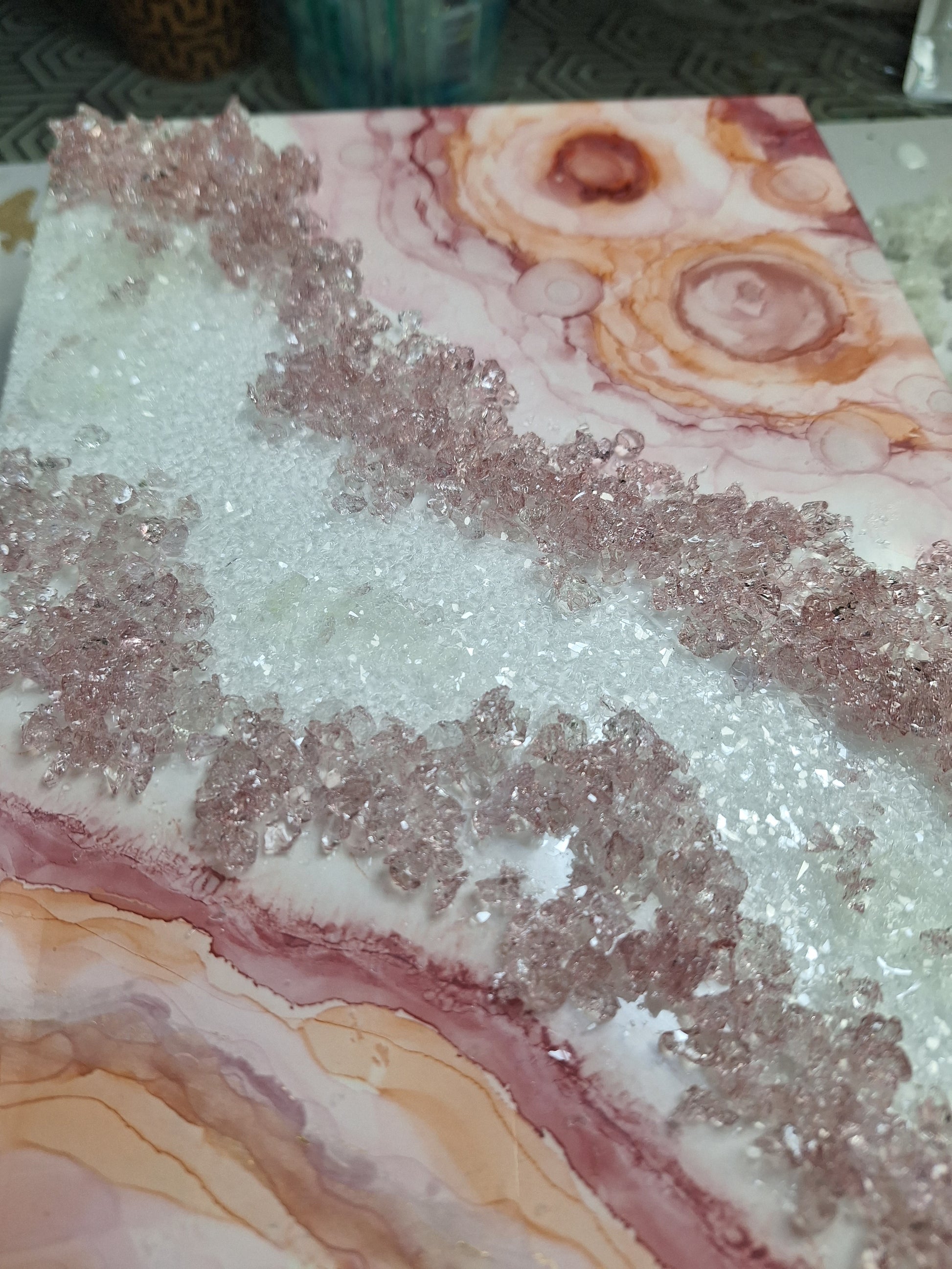 Dive into the enchanting realm of blush pink geode wall art with this online class, showcasing a natural aesthetic reminiscent of pink amethyst and a distinctive alcohol ink design. Whether you're an aspiring artist or seasoned creator, this class is meticulously crafted to inspire and guide you in crafting unique and delicate wall art adorned with beautiful druzy and captivating sparkle.