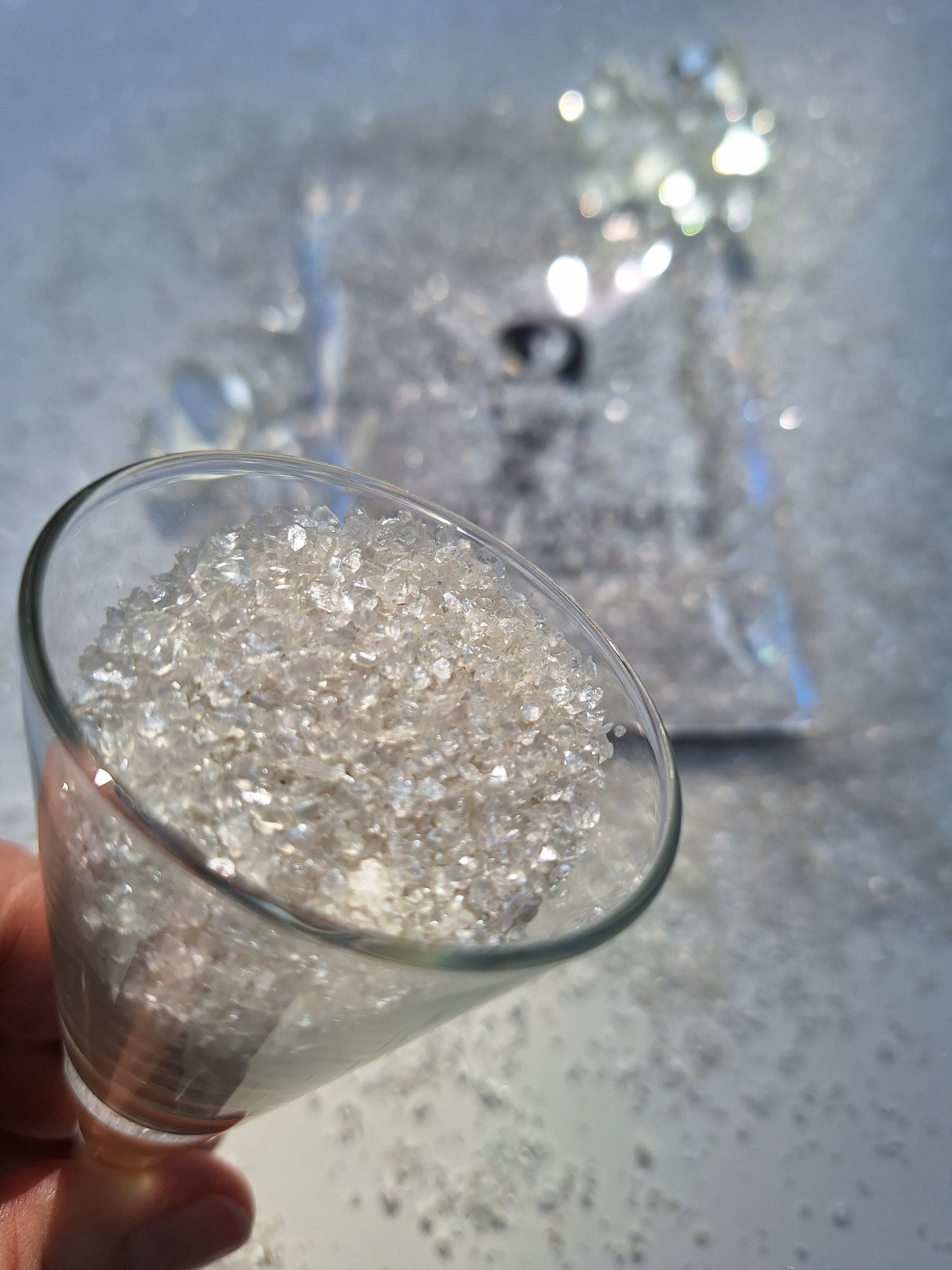 The entire set contains 555g (19.6oz) of mica flakes, premium glass, and metallic accents, including: