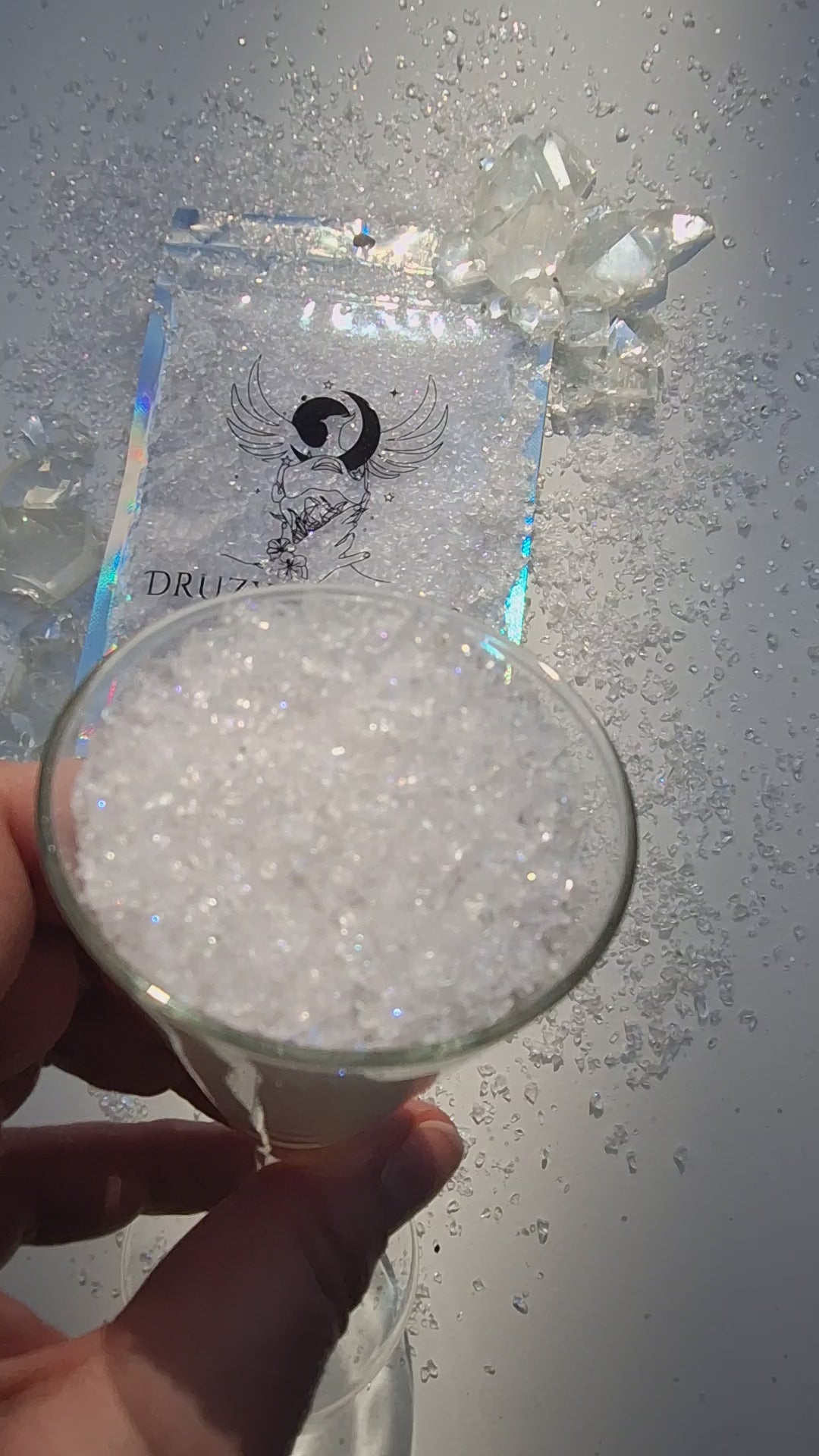 Inside each bag, you'll discover 200g (7oz) of glass druzy. The bag is in the size of my hand. Act fast, as this pearl beauty can sell out at any time.