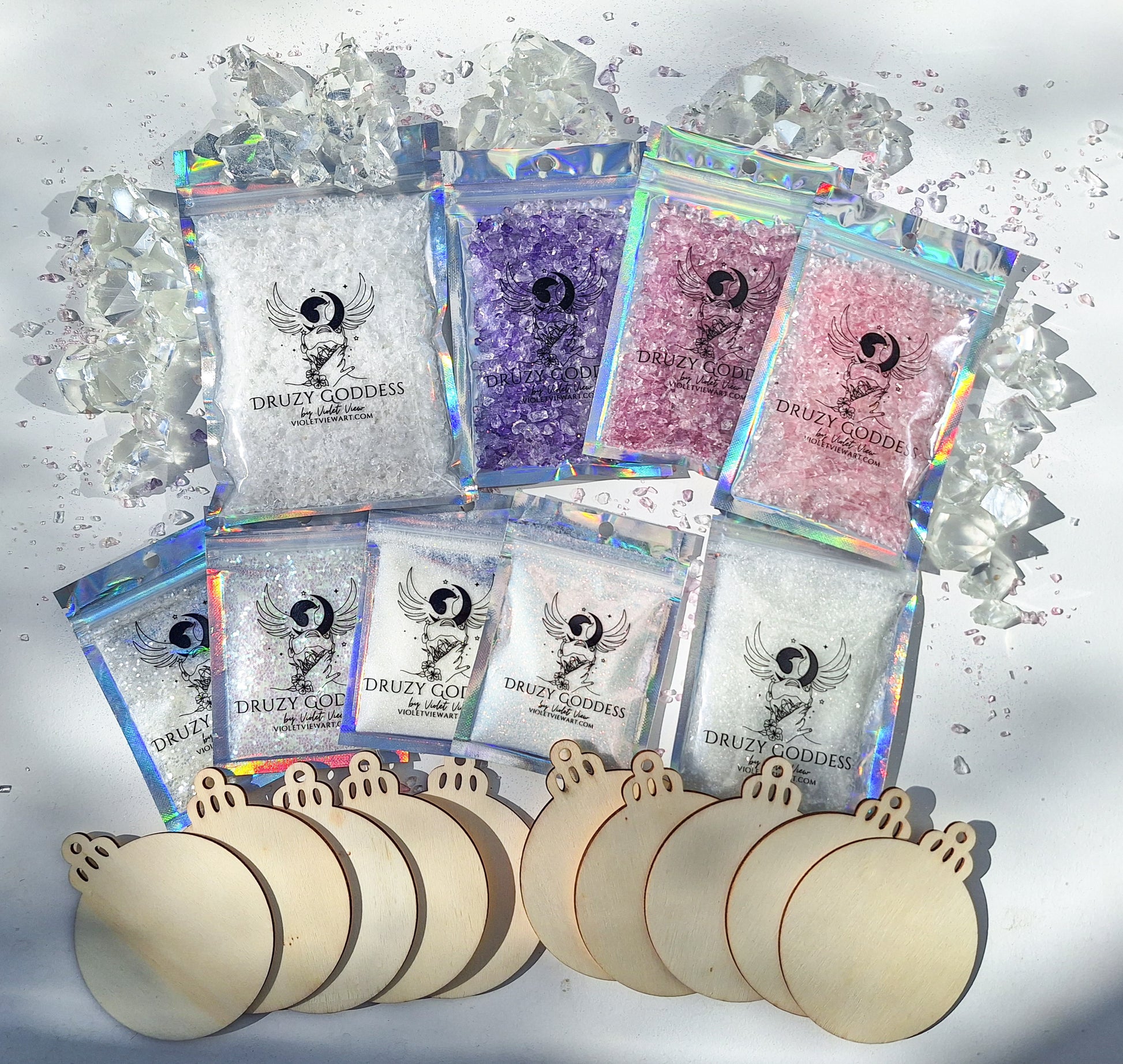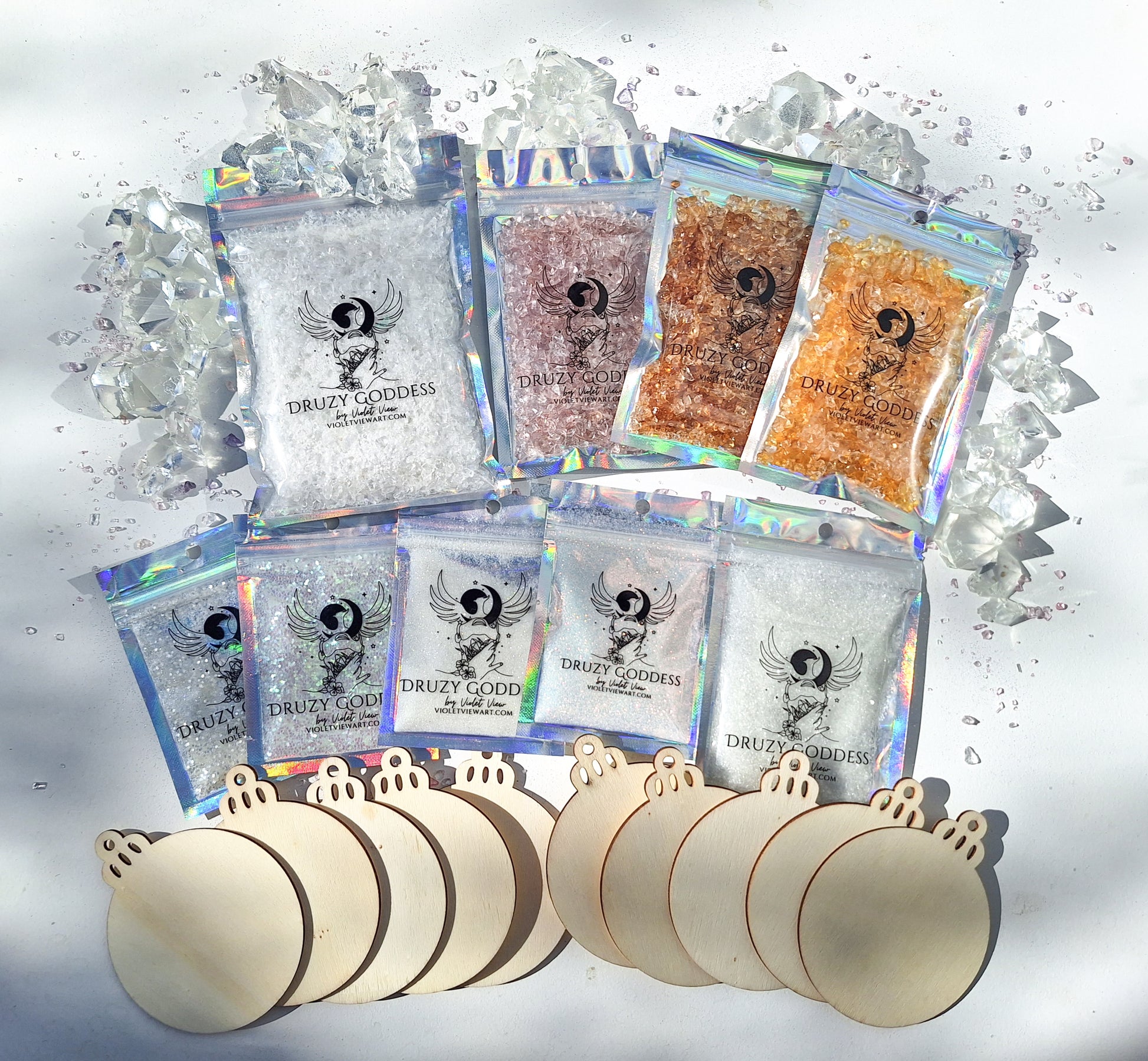 Depending on the color variant you choose, you will receive 3 x 50g (3x 1.7oz) of my signature colored druzy. Read further for more details: