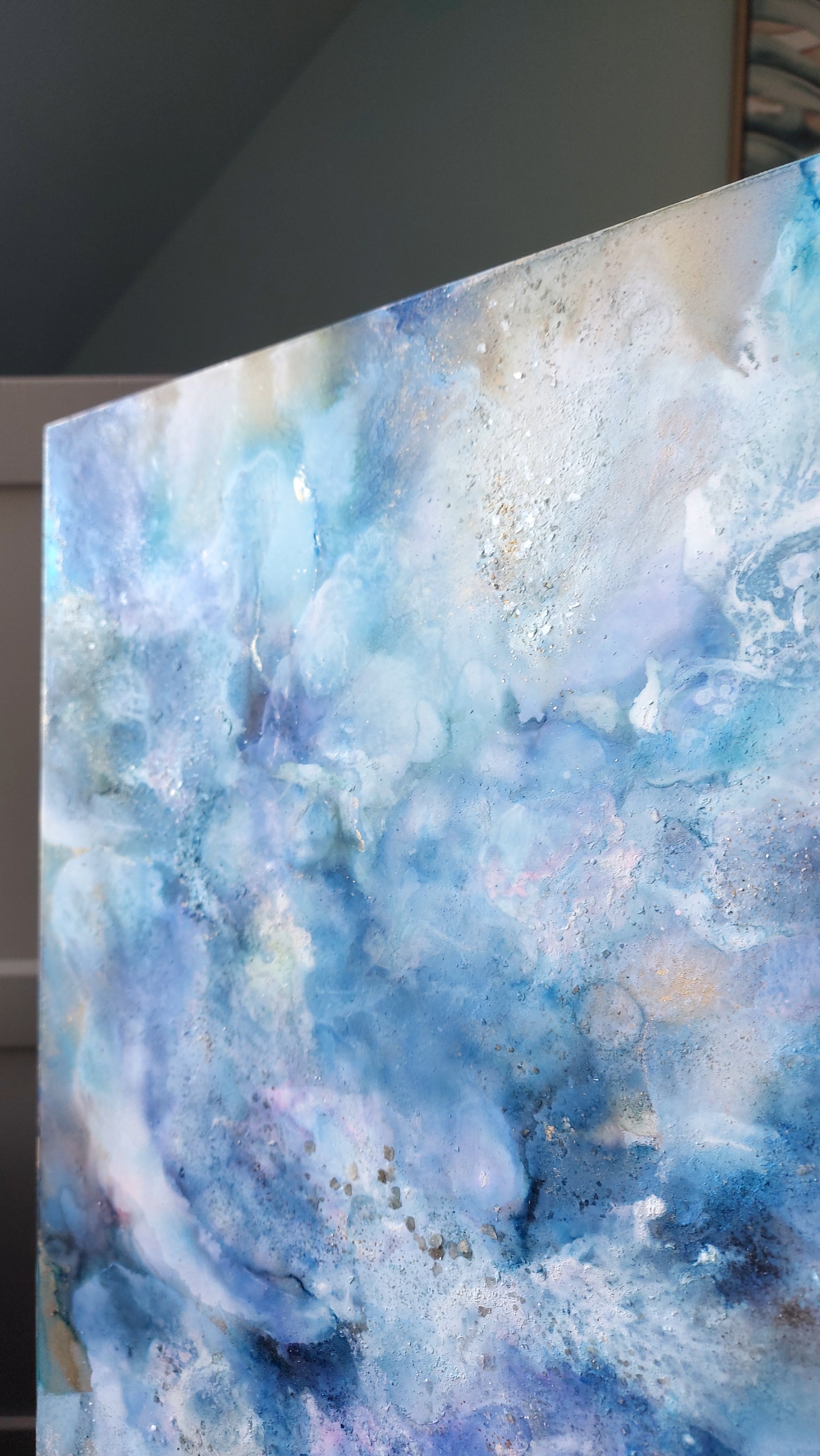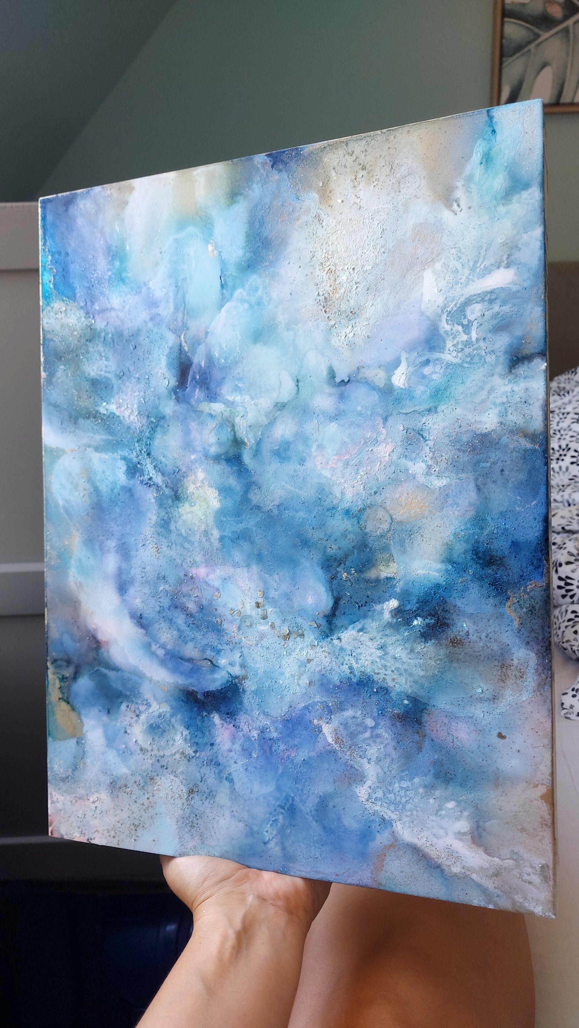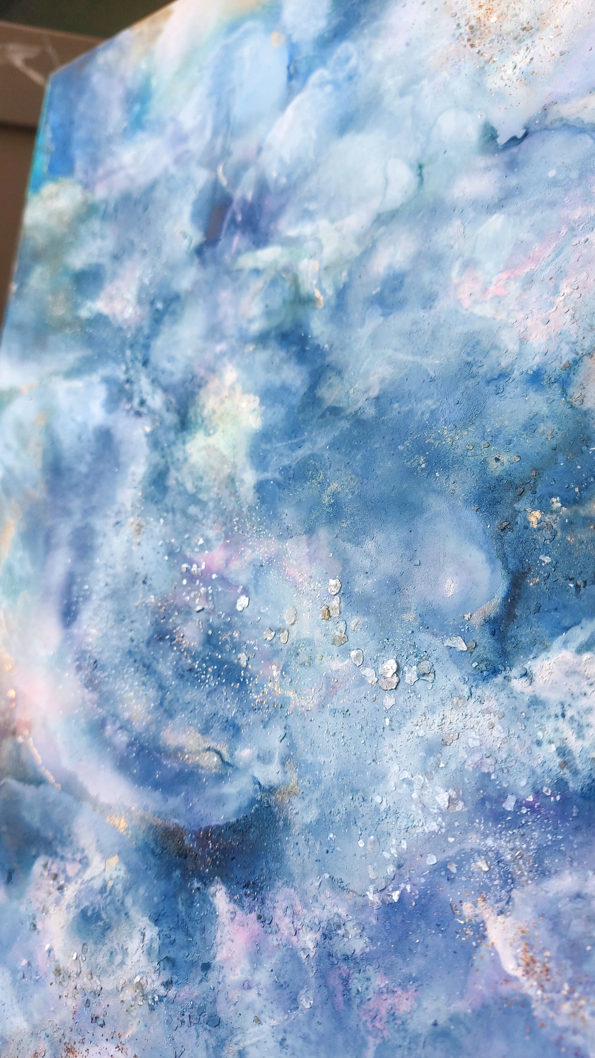 Step into a vibrant garden of dreams with Petals of Possibility, where the ethereal beauty of nature's blossoms unfolds before you, inviting you to explore the depths of your own aspirations. This stunning 30cm x 40cm x 5cm (12 x 14 x 2 inch) abstract painting immerses you in a harmonious blend of vibrant blues and soft violets, capturing the essence of flowers that symbolize hope, renewal, and the boundless potential that resides within us all.