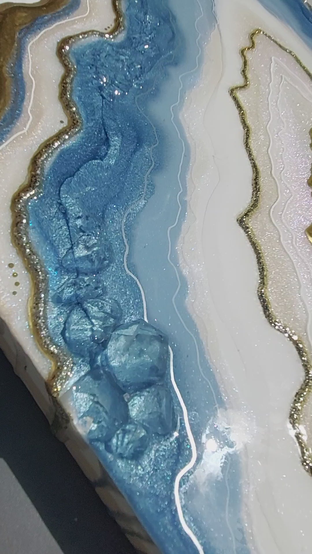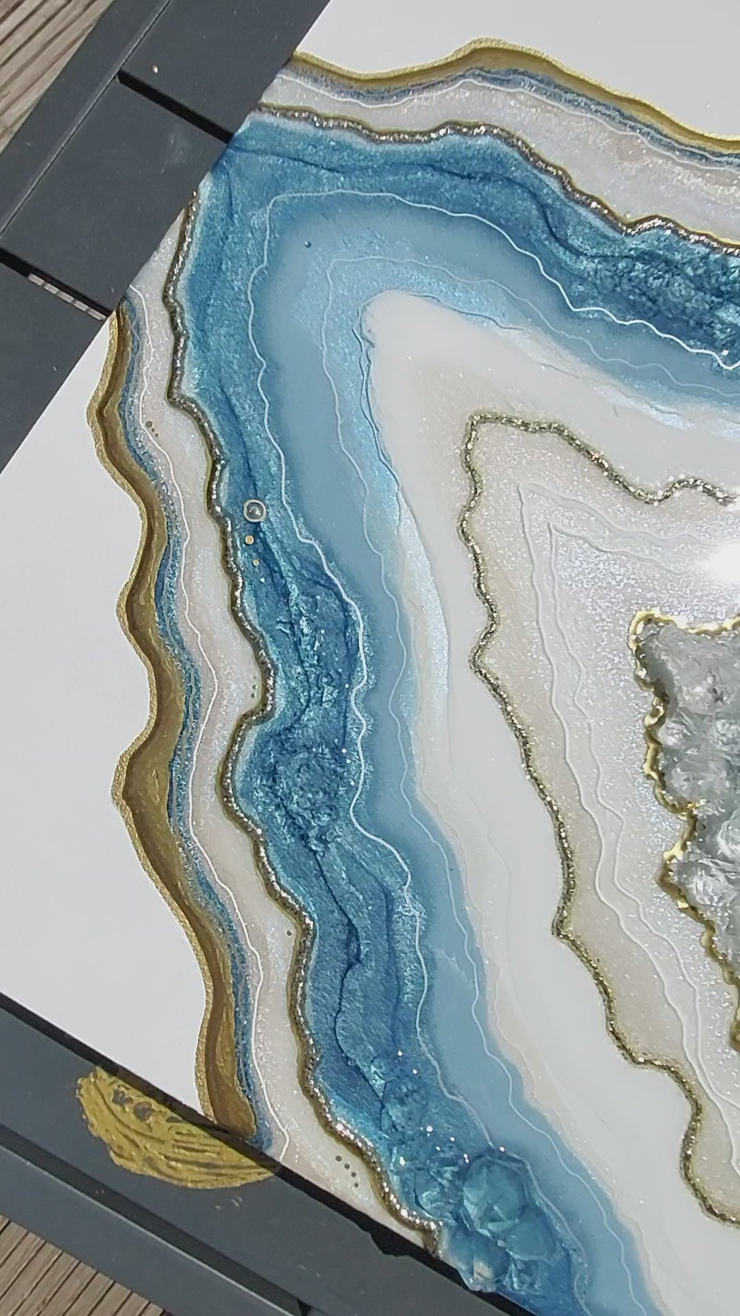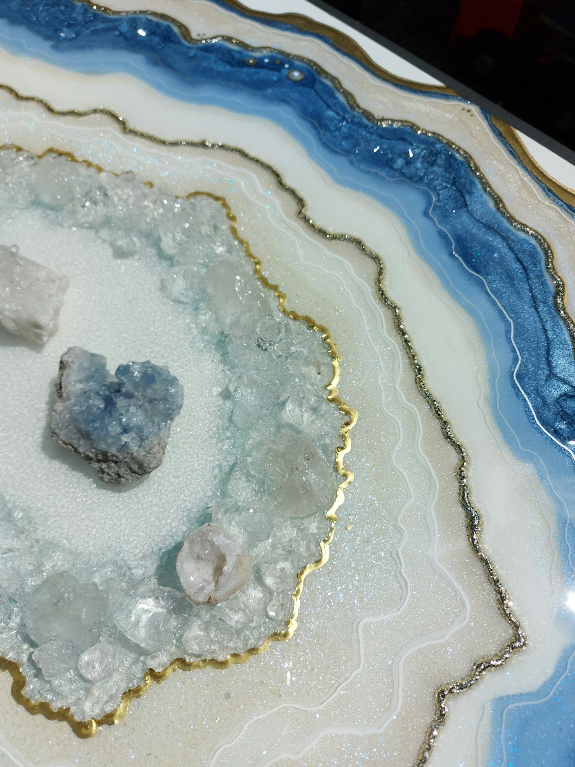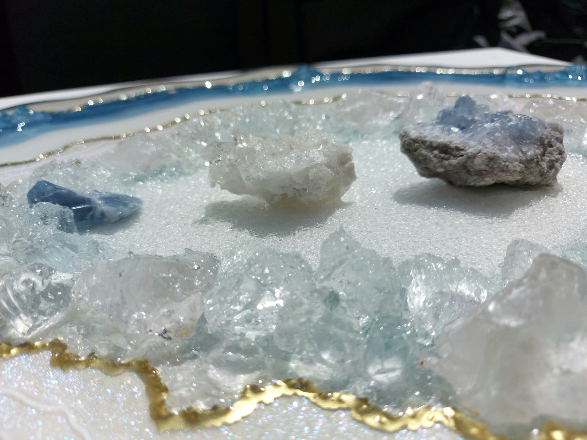 Original Celestite Inspired Geode Artwork - 50x70cm. Clear quartz and celestite infused beautiful piece of art.