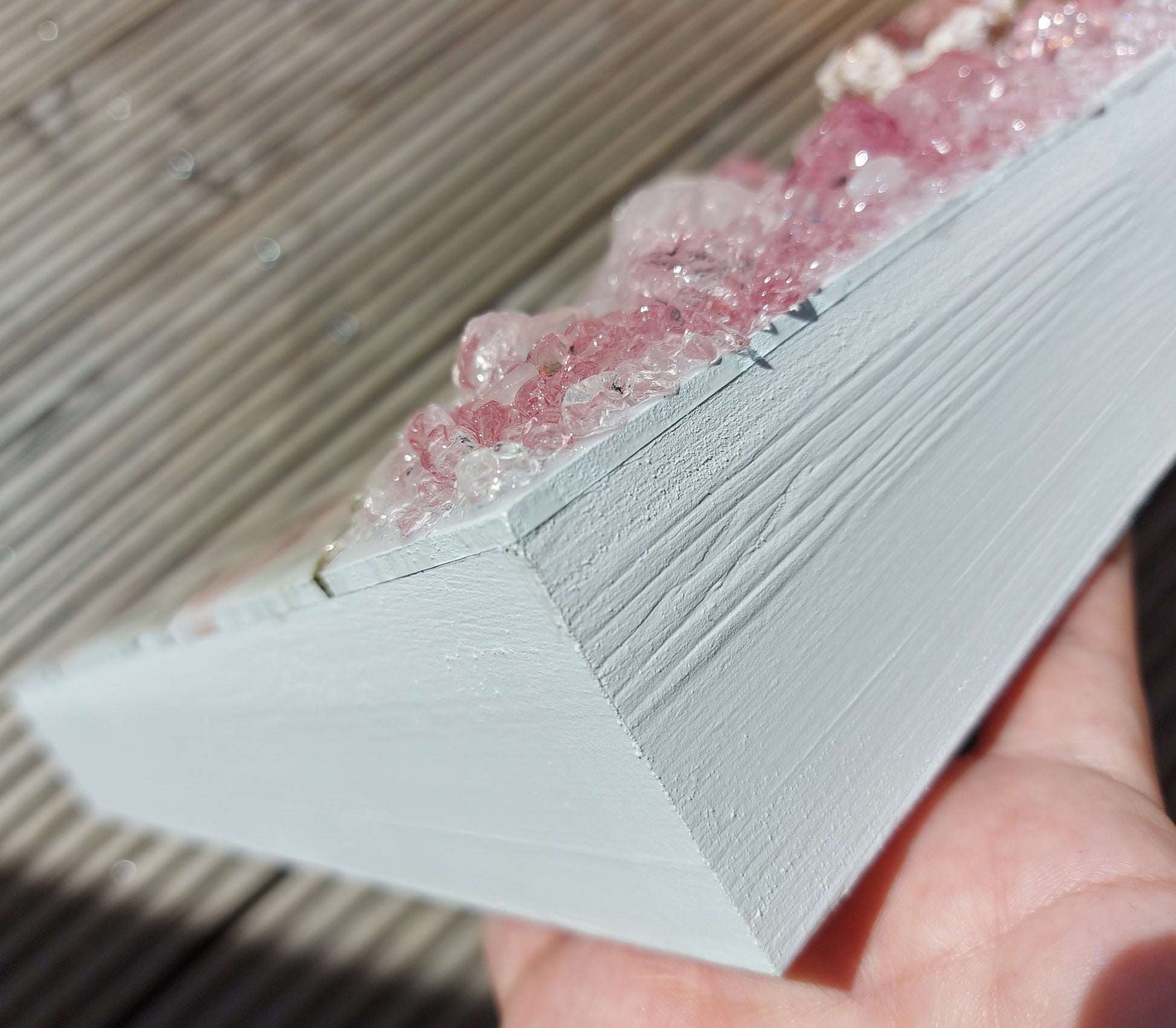 Materials: Epoxy Resin, Crystals, Glas & Pigments on a wood exhibition panel