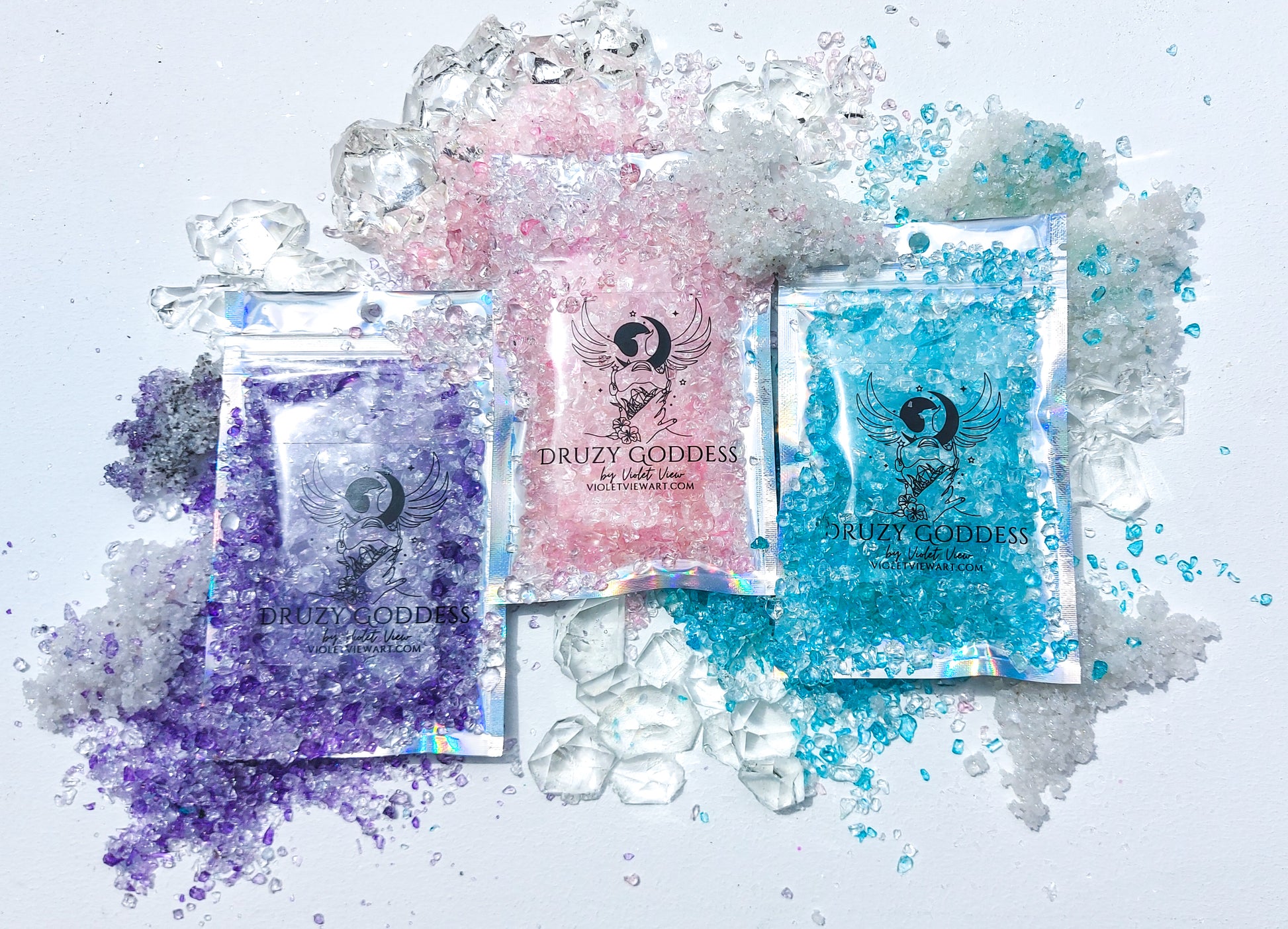 In the After Dark Variant, You Will Find: 100g of Moon Goddess, Hera's Dewdrops & Phoenix Druzy - a total of 300g (10.6oz)