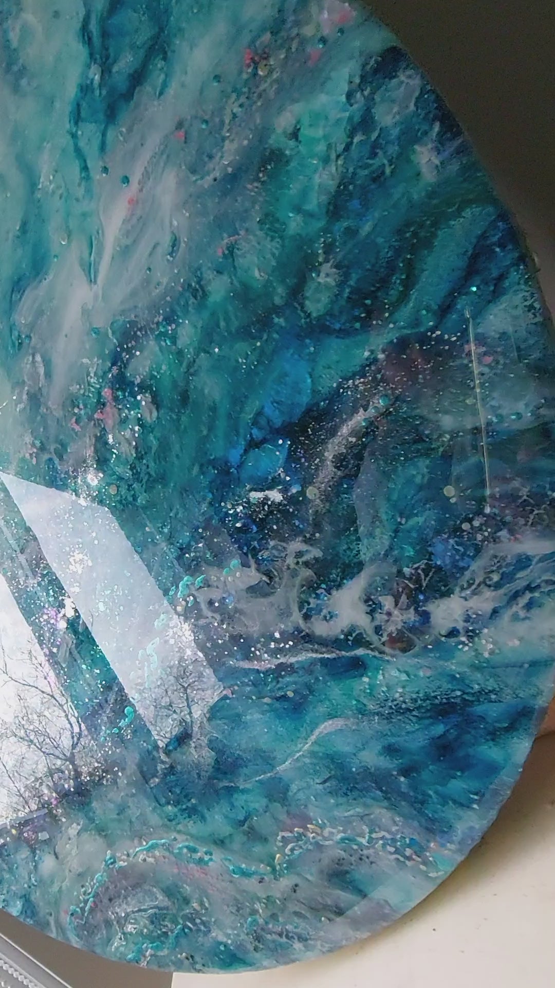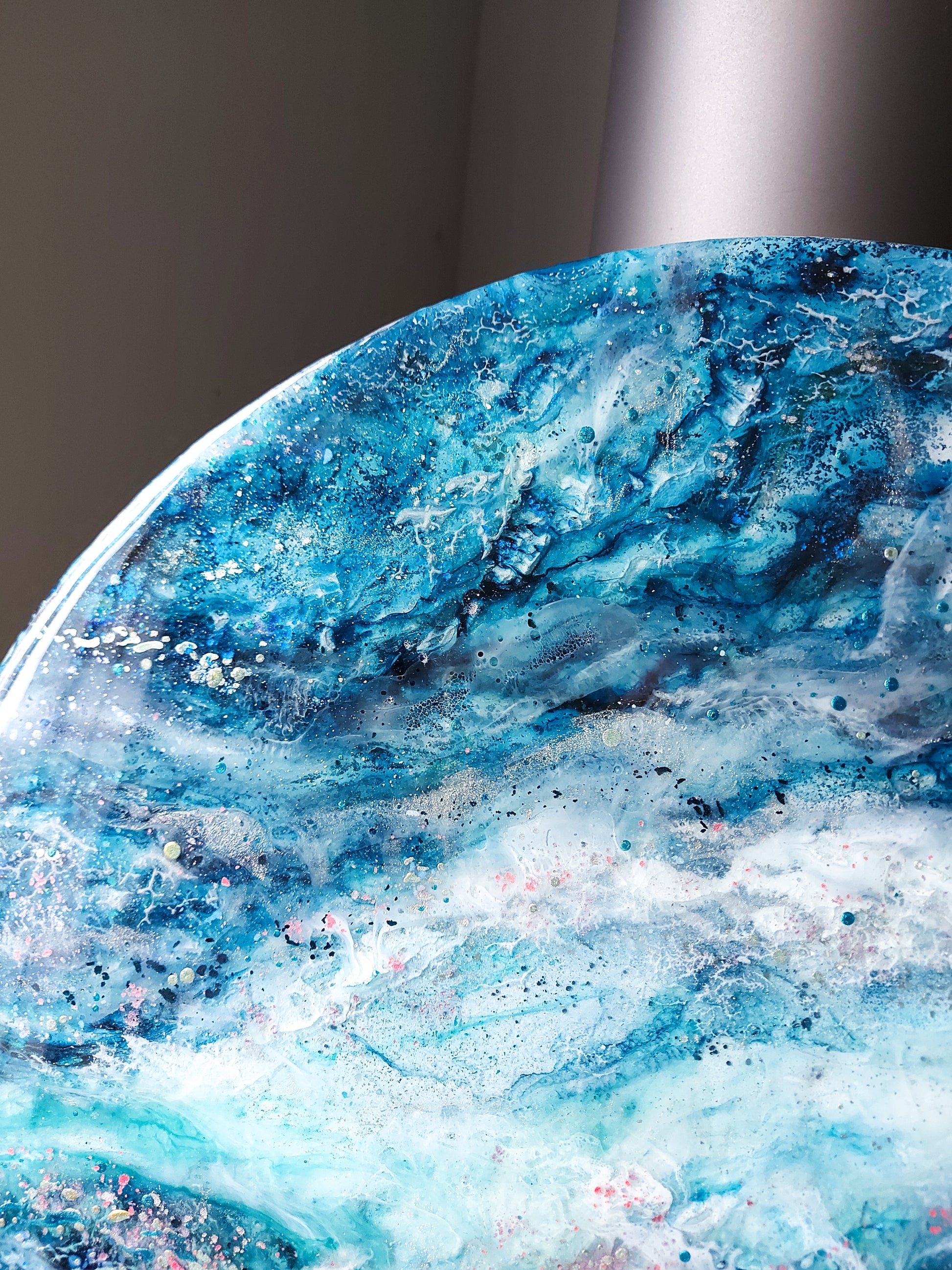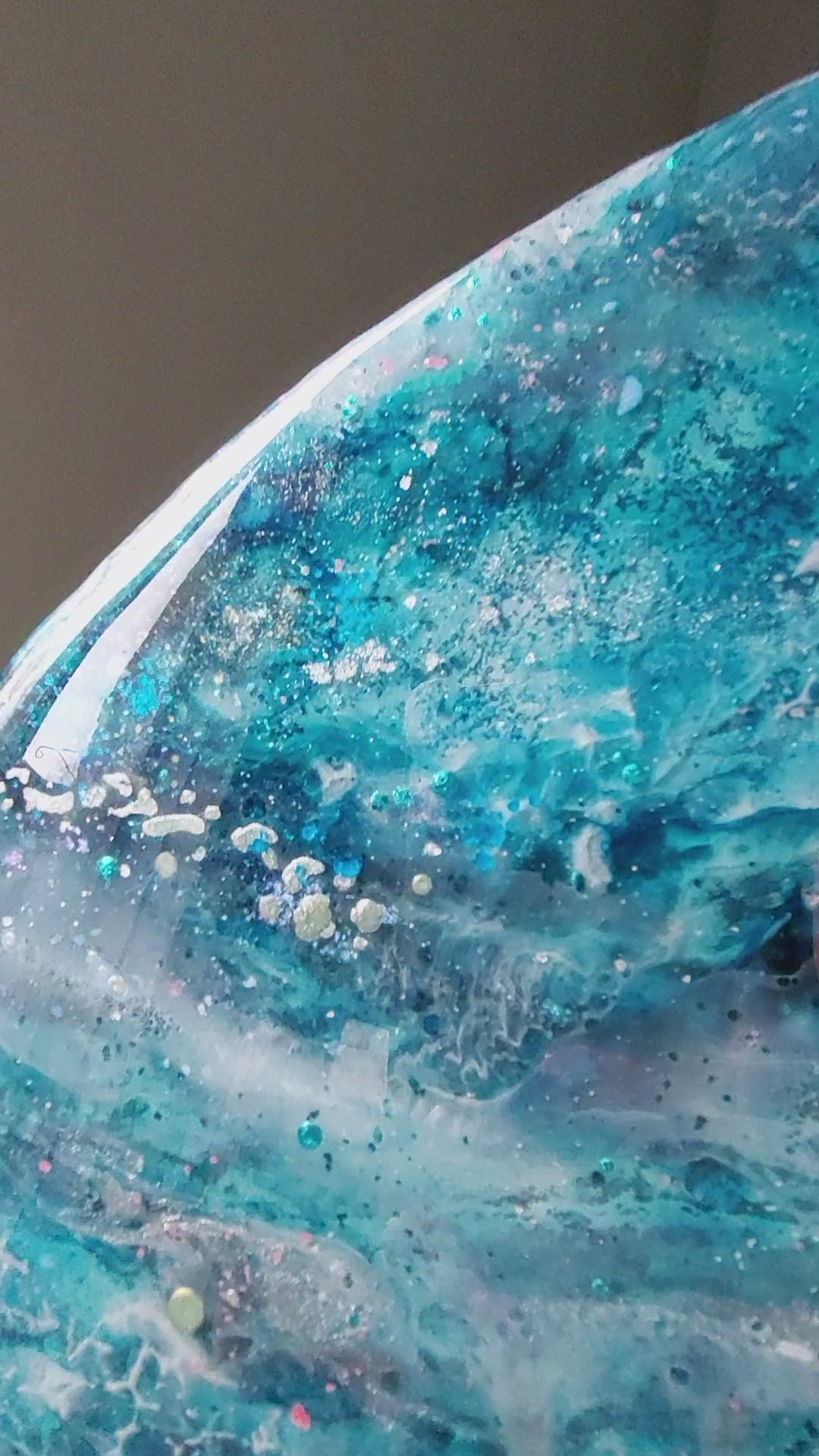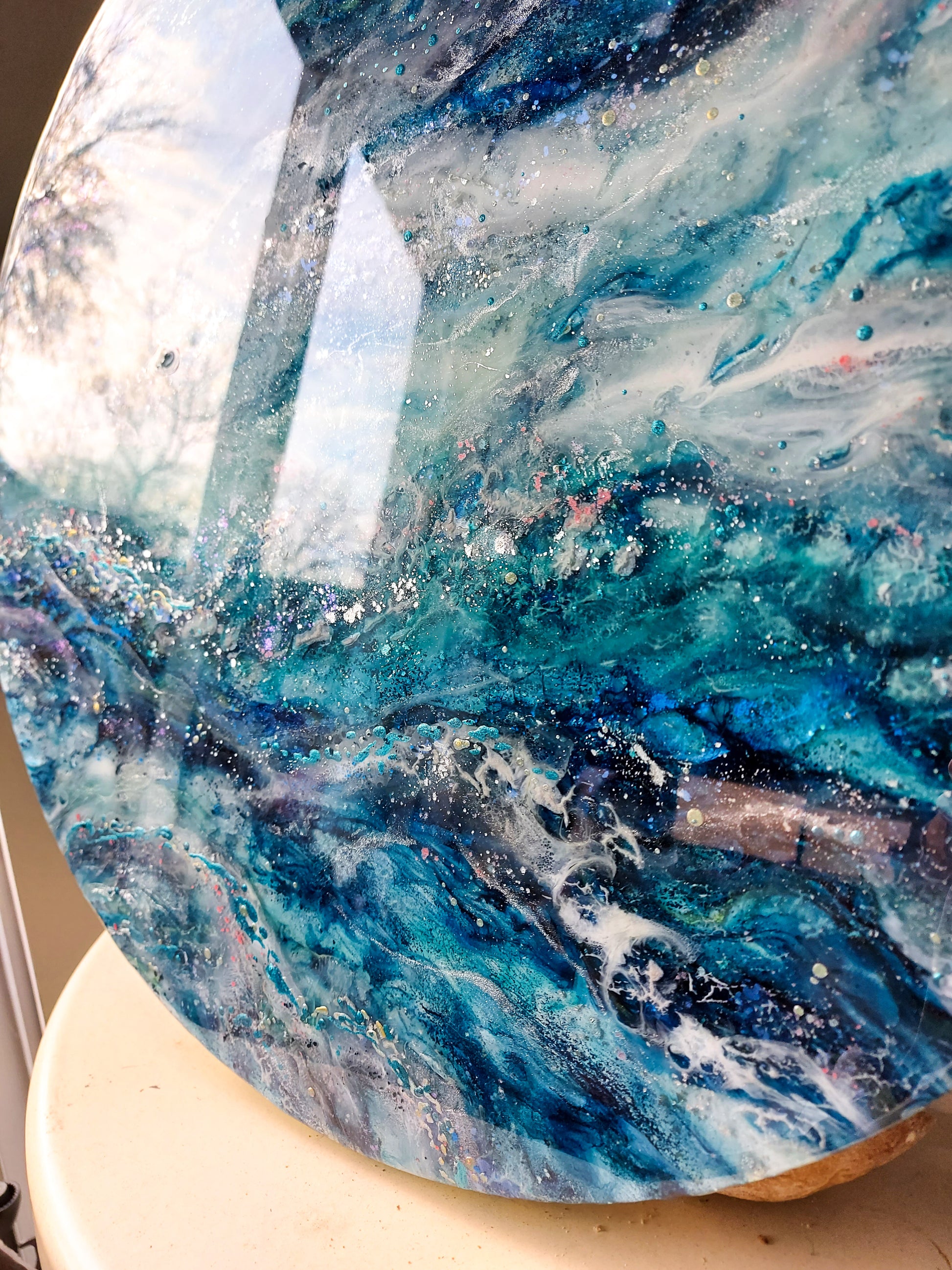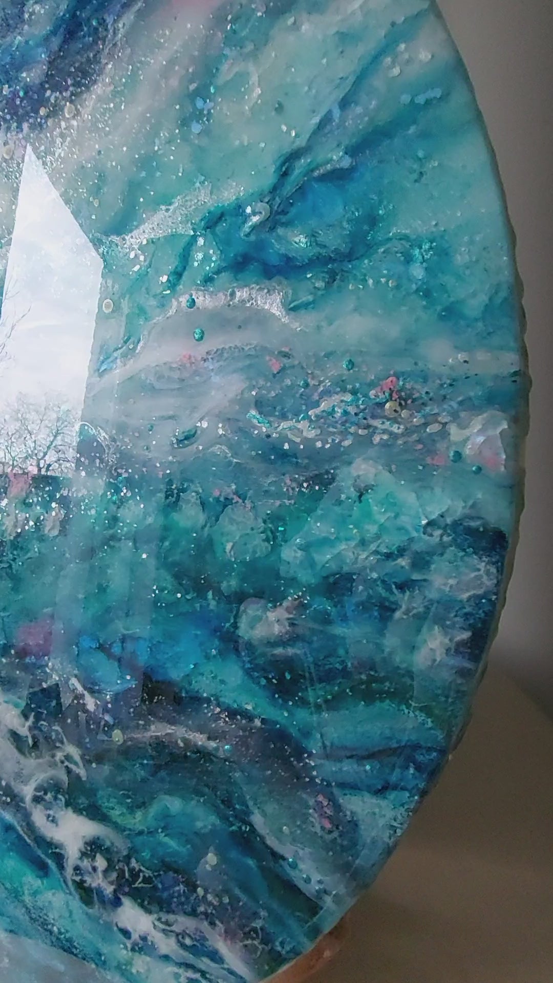 Handmade in an art studio, each piece may have minor imperfections on the surface of the resin, such as fine bubbles, ripples, or particles that find their way into the painting and harden within 24 hours. If you would like to see more photos or request a video, please feel free to contact me.